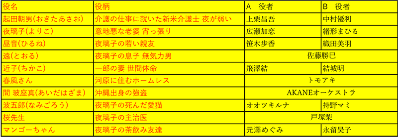 前売¥3900 当日¥4300 ★1drink制 当日受付にて別途¥700 取り置きチケット予約 ①Audition ②お名前 ③ご観劇回 ④枚数 ⑤担当役者名 以上を下記アドレスまでお送りください。 前売チケットを受付にてご用意、当日ご精算となります。 オフィシャルメール予約 radiodrama@en-and-on.com 公演日程 ![]() CAST ![]() <あらすじ> ニューヘイブンのブロンズウェイストリート。 <登場人物> エマ…女優を目指す明るく元気な女の子